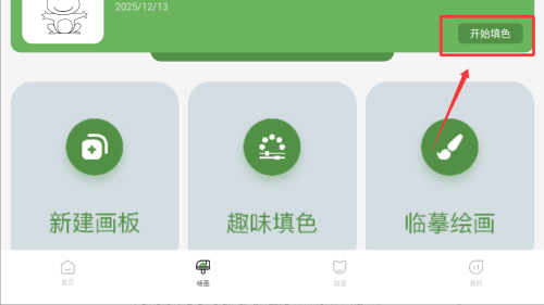 1、点击底部的绘画按钮进入下一步。