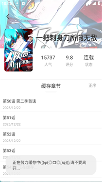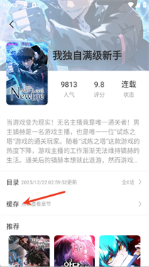 1、在漫画阅读详情页,点击缓存,开启本地保存。