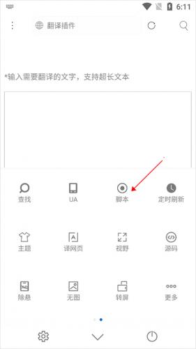 1、打开米侠浏览器嗅探版进入首页,界面中点击底部的扩展功能图标后点击【脚本】。