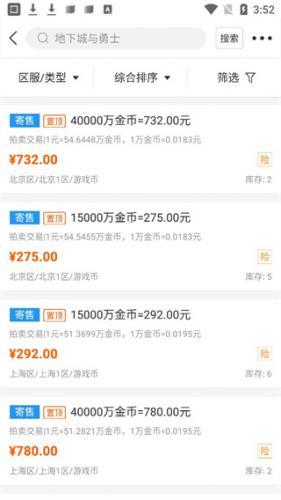 3、在这里有各类账号的详情与出售价格,小伙伴可以自行查看对比。