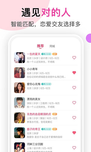 还会对用户快速推荐相互有好感的异性,对其可以高效的搭讪聊天。