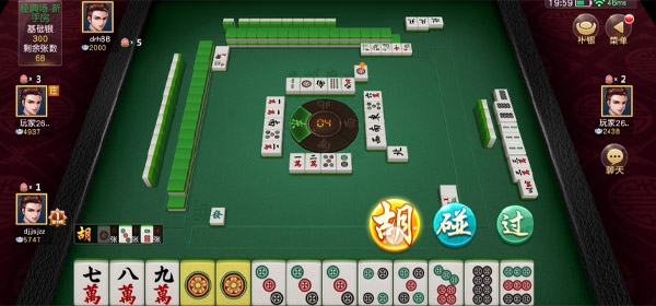 同城游苏州麻将最新版游戏中,四位玩家,庄家先出牌,其他玩家可碰,可杠,不可以吃。