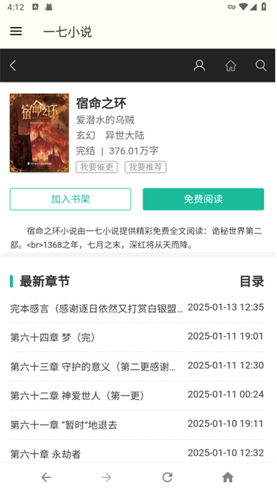 2、收藏和书架管理:用户可以收藏喜欢的小说,方便随时查看;自定义书架管理,根据阅读进度和喜好进行分类管理。