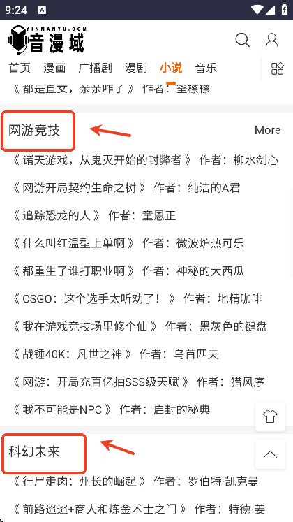 喜欢小说的用户们也可以根据个人阅读喜好来挑选自己喜欢的小说,有言情,耽美和百合三大类,还有科幻未来,网游竞技,悬疑推理等小说题材分类