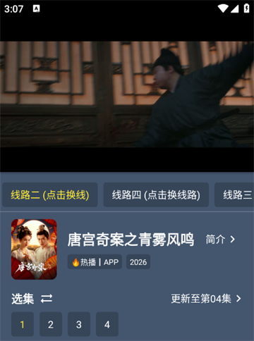 3、内置多线路播放系统,每部影片提供多个视频源选择,当某一线路出现卡顿或加载失败时,可一键切换至备用源。