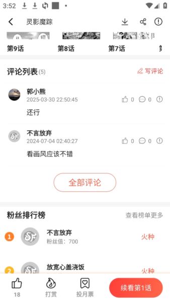 3、向下滑动可以查看评论;