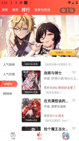 4、排行榜功能可以帮助你直观的找到当下最新最热的漫画有哪些。
