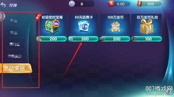 2、然后找到活动奖品,选择话费兑换就可以了