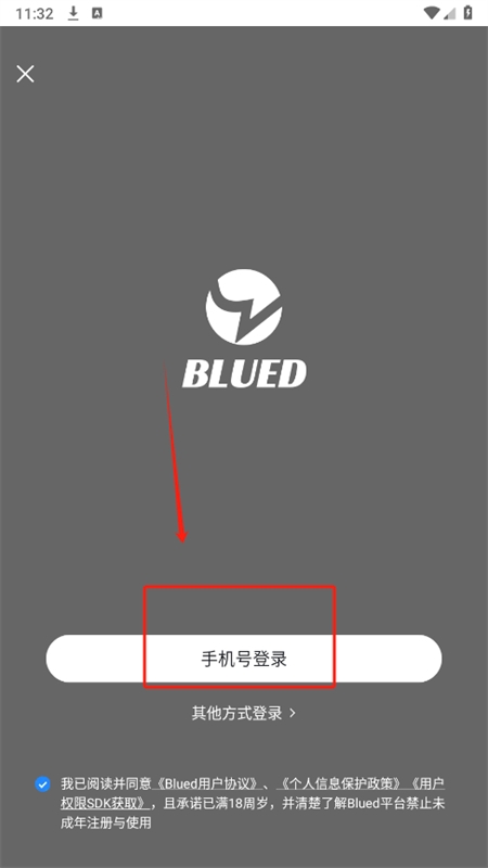 2、然后打开软件进入登录页面,点击手机号登录