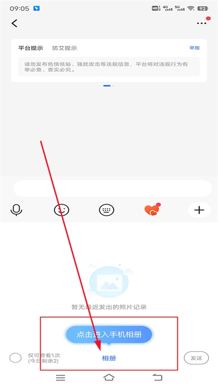 1、在聊天信息栏中点击发送图片