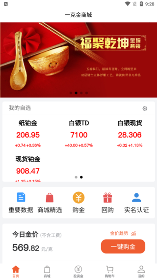 一克金App是苏投黄金的自有品牌电子商城软件,致力于为用户打造便捷、安全的黄金购物平台,提供投资金条、黄金首饰、贵金属工艺摆件等多种黄金饰品,均经专业检测,品质可靠,无惧瑕疵。