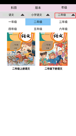 1. 打开应用首页,根据孩子所在年级选择对应的语文课本。
