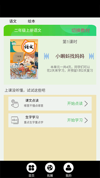2. 点击所选课本进入详情页面,即可使用课文点读、生字学习等核心功能。