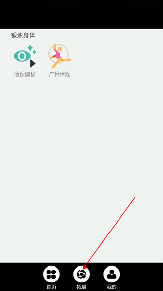 3. 点击底部“拓展”栏目,还可参与眼保健操、广播体操等健康活动,兼顾学习与身心发展。