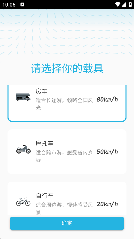 3. 从三种载具中挑选你偏爱的出行方式。