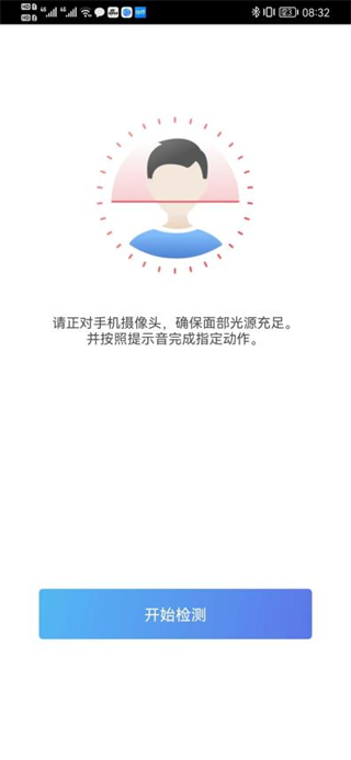 5. 进入人脸识别环节,点击“开始识别”并按语音或屏幕提示完成指定动作,完成身份核验。