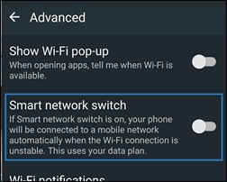 - 关闭Samsung设备中的“智能网络开关”或“切换到移动数据”选项。
