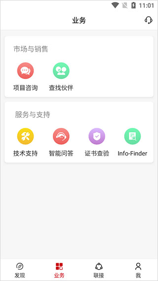2. 业务模块精准分类 业务功能划分为“市场与销售”和“服务与支持”两大板块,用户可根据实际需求查询政策、提交意向、查看订单或获取技术支持,实现高效业务对接。