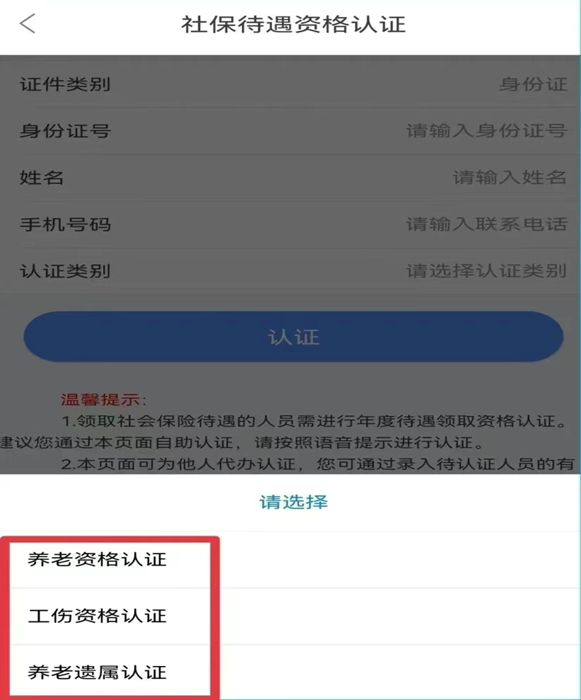 温馨提示:退休人员请务必选择“养老资格认证”类别。