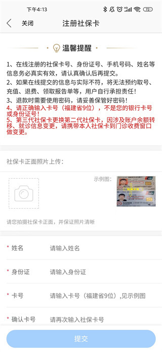 - 填写相关信息并提交,即可成功绑定医保卡。