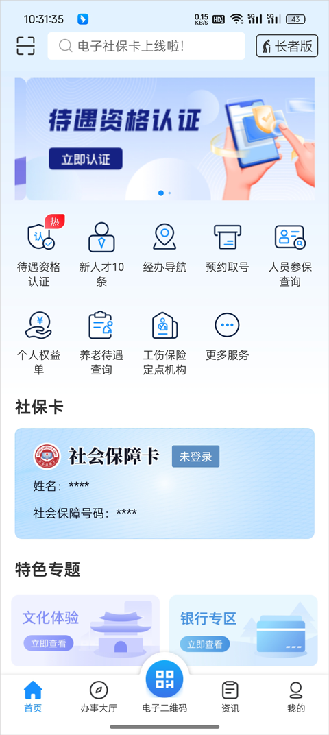 1. 电子社保卡市民认证:用户可直接在App内完成电子社保卡的申领与身份认证,安全便捷。