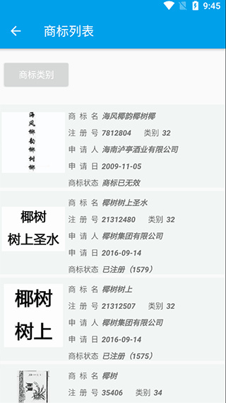 2、在结果页面,可点击“商标类别”进一步解析商标所属的国际分类及使用范围;