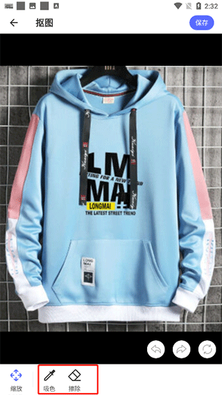 4、使用吸色或擦除工具完成抠图操作,完成后点击顶部“保存”即可