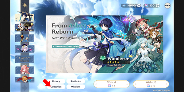 - 点击“十连抽”按钮即可开始抽卡;若想查看已获得的角色或武器,只需点击卡池下方的“Collection”选项即可浏览完整图鉴。