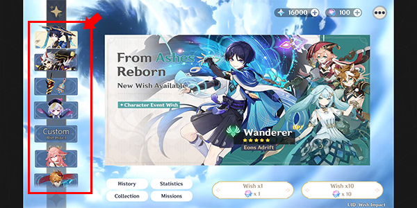- 进入主界面后,在左侧选择你感兴趣的卡池类型(如角色活动池、武器池或常驻池等)。