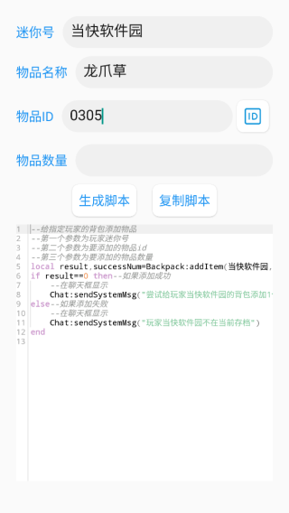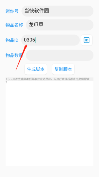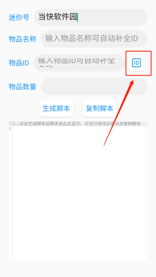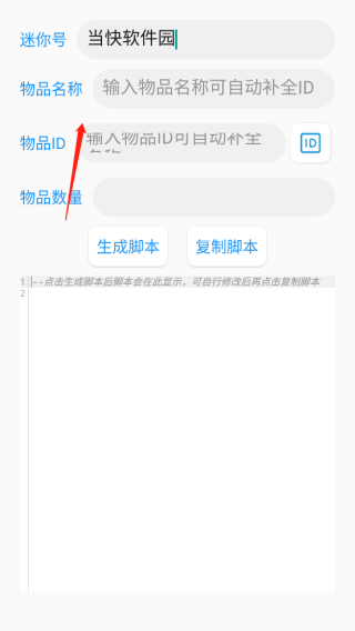 4、输入您的迷你号(若未填写则默认为房主),再填写所需物品的名称及对应ID。