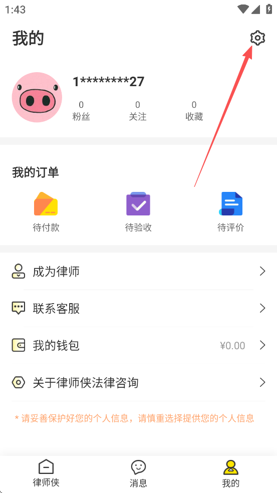 1、打开律师侠App,进入底部【我的】页面
