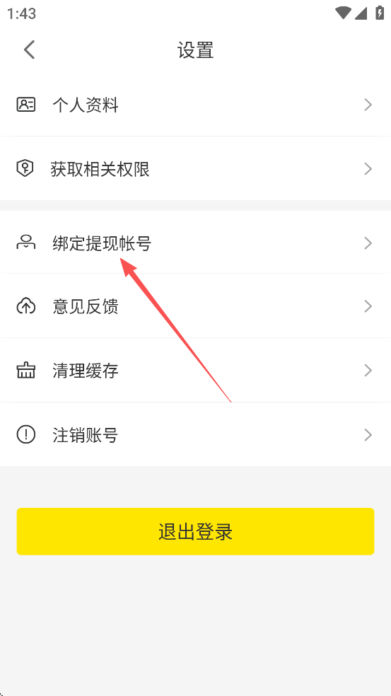 3、选择【绑定提现账号】功能