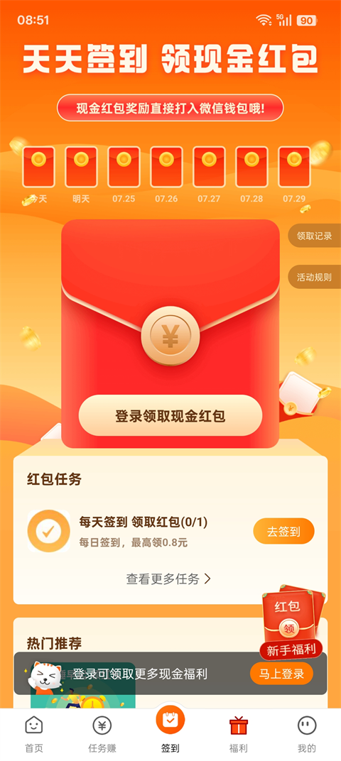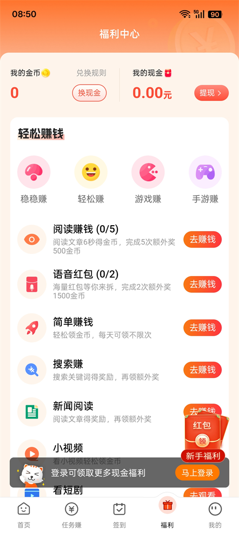 5、参与活动中心的限时福利任务,轻松赚取额外零花钱。