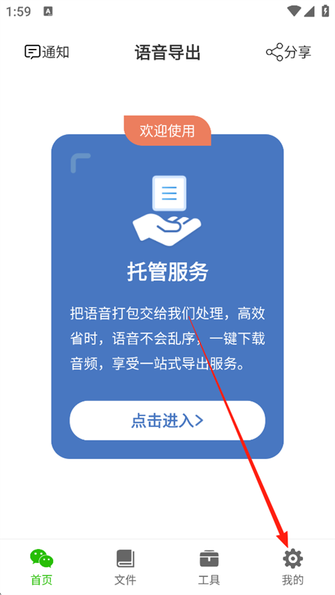 - 打开语音导出助理软件,点击底部【我的】进入个人中心。