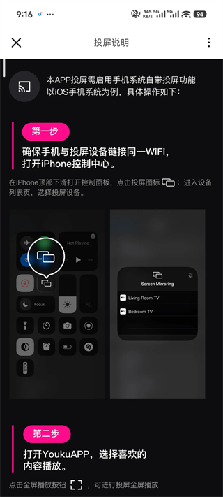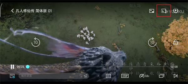 4、如需投屏,请点击屏幕顶部带有信号图标的按钮(需确保手机与投屏设备连接同一WiFi网络)。