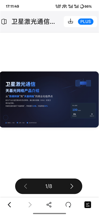 5. 以卫星激光通信产品为例,上传资料后稍等片刻,Genspark AI即可自动生成完整PPT,点击即可预览全部页面。