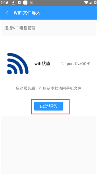 2. 点击「打开WiFi传输」,进入WiFi文件导入页面;