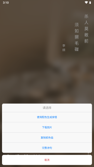 1. 进入“灵感”板块,浏览系统推荐的配色方案或古典诗句,激发设计创意;