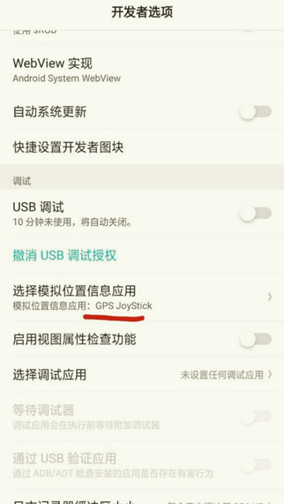 3. 在设置中确认选择“GPS Joystick”作为模拟定位应用。