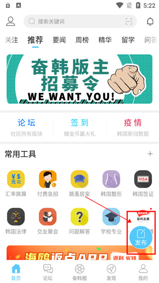 如何在奋斗在韩国App中发布帖子?