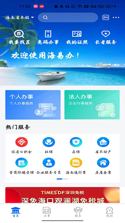 1. 打开海易办app,在首页进入【法人服务】模块;