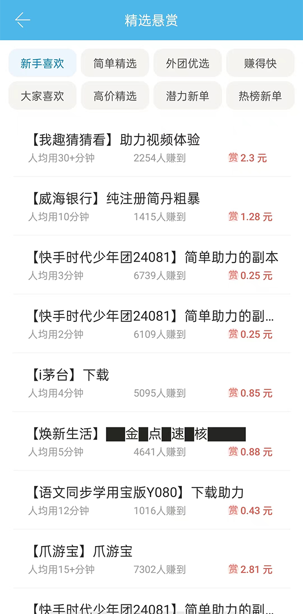 3、“精选悬赏”专区汇集高价值、高质量任务,助你高效变现。