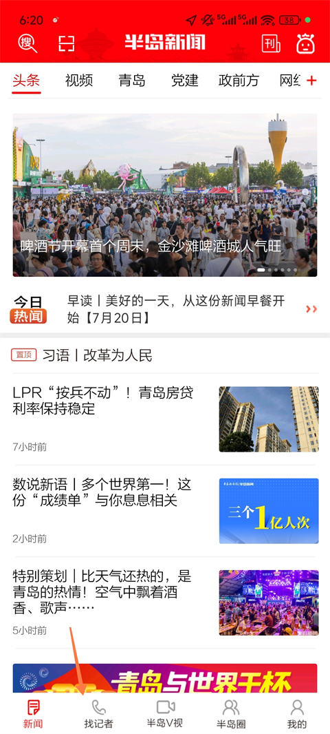 1. 打开半岛新闻客户端,点击首页“找记者”入口。
