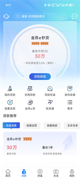 涵盖金燕e秒贷、金燕e购贷、金燕e薪贷等多种贷款产品,支持在线申请、极速审批,并提供贷款管理、还款计划及个性化推荐服务。