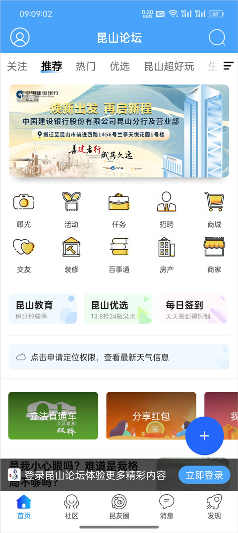 1. 打开昆山论坛App,点击右下角“发现”入口。