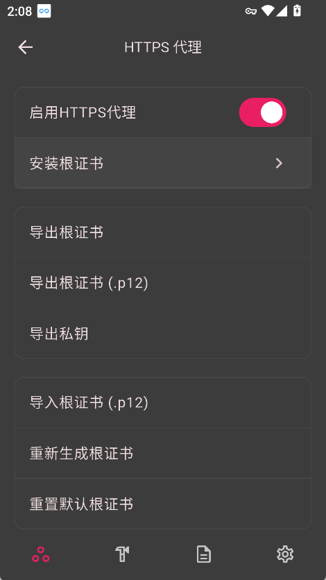 4. 在菜单中可灵活开启 HTTPS 代理、设置应用白名单等功能。